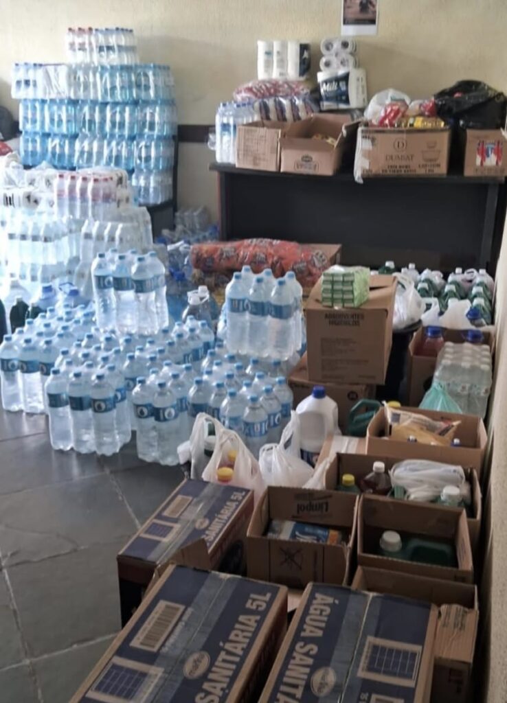 Estão sendo arrecadados água potável, alimentos não perecíveis e material de limpeza